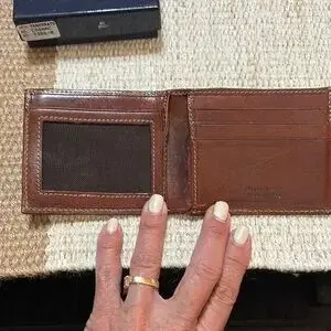 BORGO ESTRUSCHICrafted from premium Italian leather, this brown bifold wallet exudes elegance with its smooth finish and meticulous stitching. Its timeless design ensures it remains a staple accessory for any occasion, offering both style and functionality. Features clear panel for easy access for photo ID. NEW IN THE ORIGINAL BOX! Without tags!